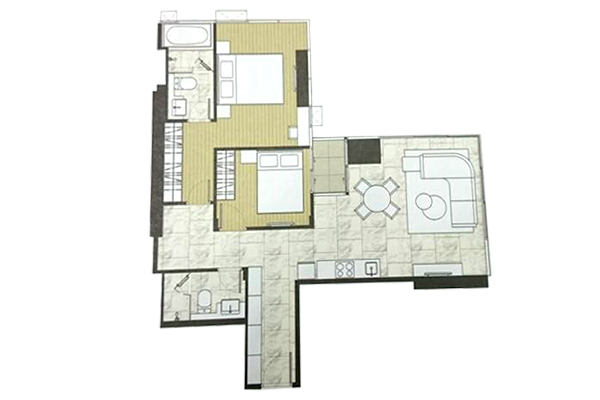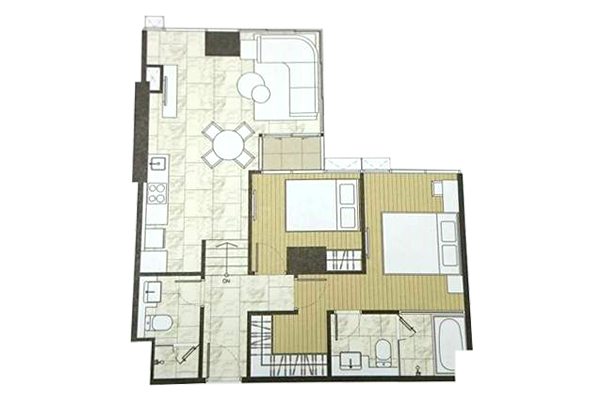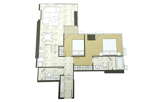 ตัวอย่าง ห้องแบบ 2 ห้องนอน 2 ห้องน้ำ (Vertical Interlocking) - พื้นที่ใช้สอย 86.00-86.50 ตร.ม.