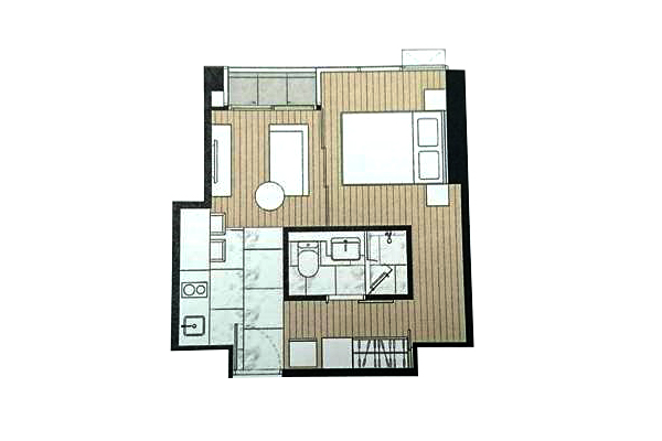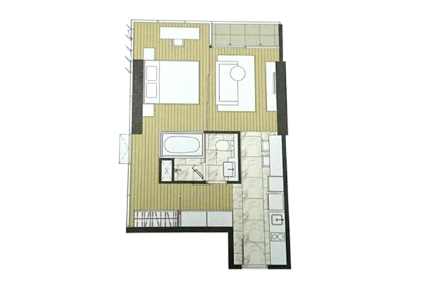 ตัวอย่าง ห้องแบบ 1 ห้องนอน 1 ห้องน้ำ - พื้นที่ใช้สอย 48.50-49.50 ตร.ม.
