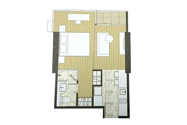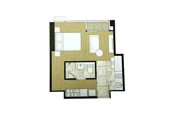 ห้องแบบ 1 ห้องนอน 1 ห้องน้ำ :