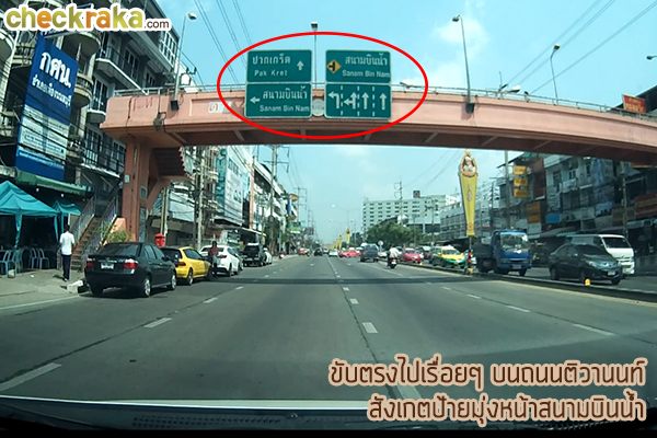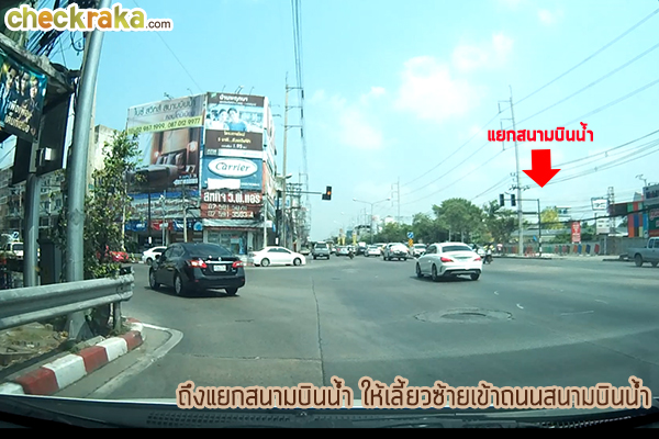 จากหน้าโครงการมองออกไปยังถนนสนามบินน้ำ ด้านซ้ายมือสีเหลืองจะเป็นคอมมูนิตี้มอลล์ของโครงการ