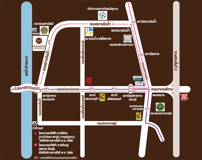 - ที่ตั้งโครงการ : ถนนสนามบินน้ำ ตำบลบางกระสอ อำเภอเมืองนนทบุรี จังหวัดนนทบุรี 11000
