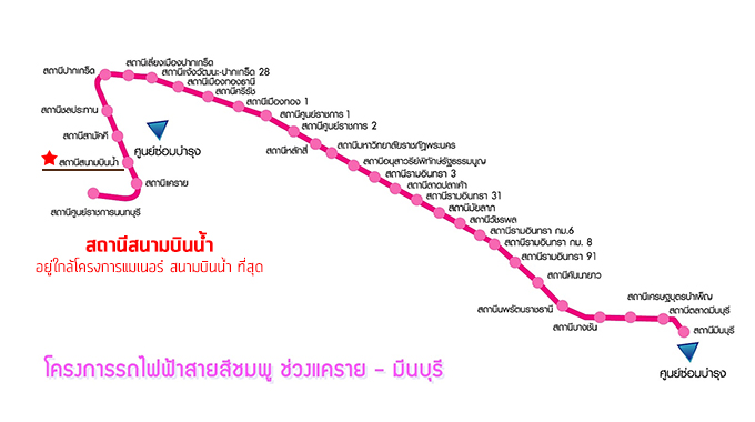 แผนที่สถานีต่างๆ ของโครงการรถไฟฟ้าสายสีชมพู (ช่วงแคราย-มีนบุรี)