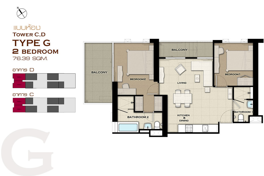 | 2 ห้องนอน | 73.75 | 30 | 9,100,000 |