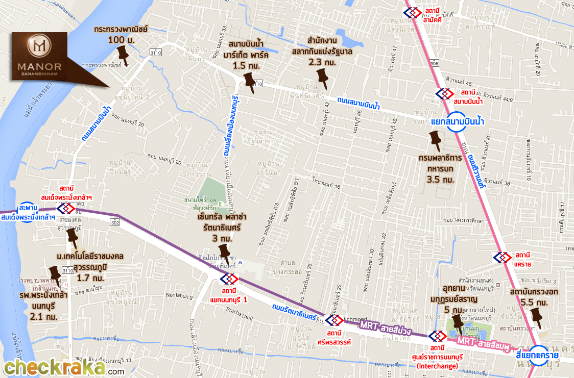 - ที่ตั้งโครงการ : ถนนสนามบินน้ำ ตำบลบางกระสอ อำเภอเมืองนนทบุรี จังหวัดนนทบุรี 11000