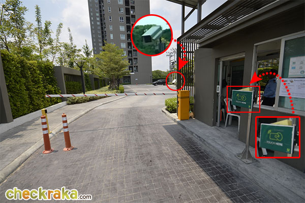 ก่อนผ่านประตูตรงทางเข้า-ออกโครงการจะเจอกับจุดสแกนบัตร