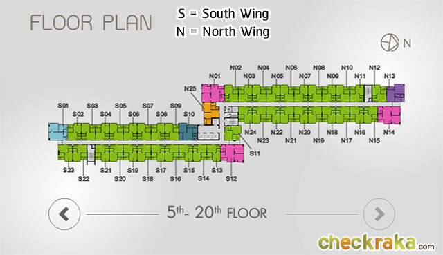 ตั้งแต่ชั้น 5-20 จะเป็นในส่วนของห้องพักอาศัยทั้งหมด เฉลี่ยชั้นละประมาณ 45-48 ยูนิต