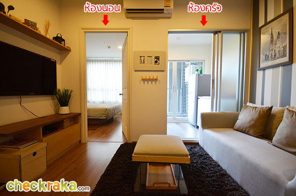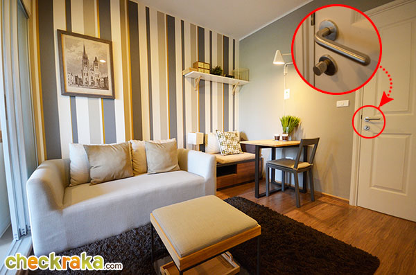 ห้องตัวอย่าง 1 ห้องนอน มีขนาด 30 ตร.ม. ขายแบบ Fully Furnished บานประตูเป็นขนาดปกติ