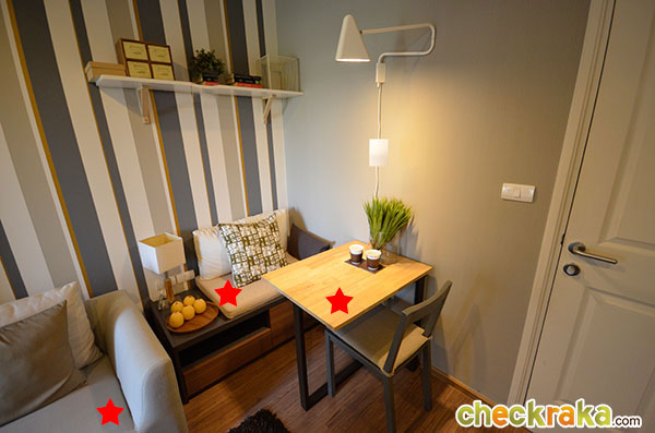สัญลักษณ์รูปดาวสีแดงคือเฟอร์นิเจอร์ที่ทางโครงการให้มานะคะ ประกอบไปด้วยโต๊ะรับประทานอาหาร,