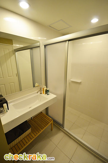 เดินเข้าไปในห้องน้ำจะเจอกับพื้นที่ที่แยกระหว่างส่วนเปียก-แห้งไว้ด้วย Shower Box ค่ะ