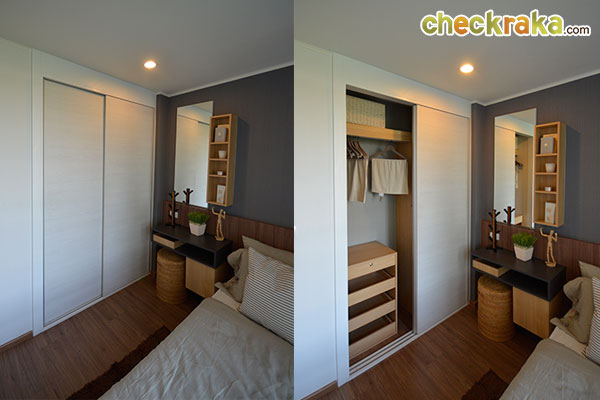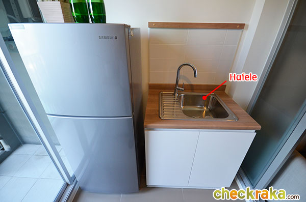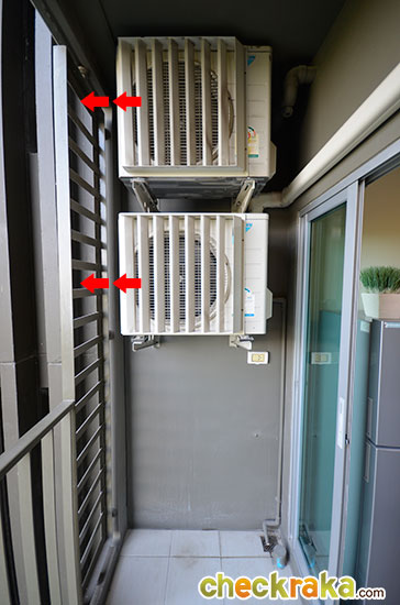 มีประตูบานสไลด์อีก 1 จุด ก่อนที่จะเดินออกไปตรงระเบียง ซึ่งจะมีช่องเก็บคอมเพรสเซอร์