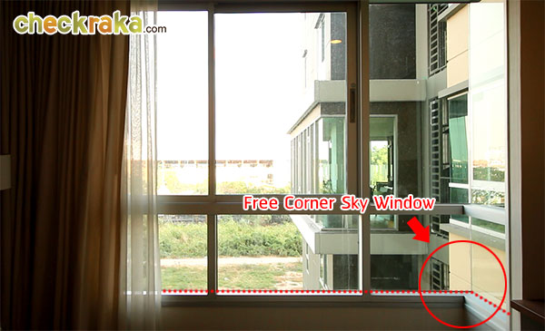 หน้าต่างภายในห้องนอนถูกออกแบบให้เป็น Free Corner Sky Window เปลี่ยนมุมห้องจากผนังให้เป็นกระจกใส