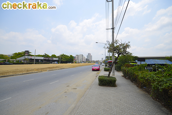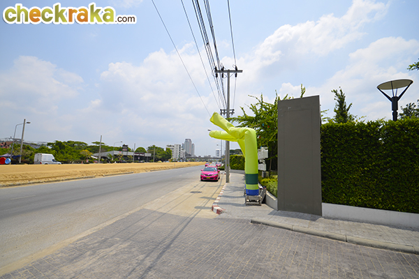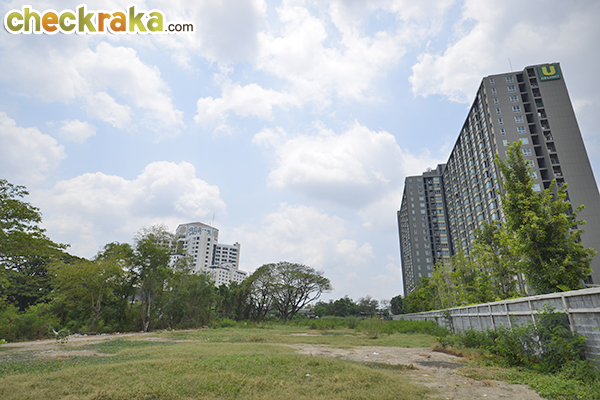ทำเลรอบโครงการ - ทำเลรอบโครงการยังเป็นพื้นที่ว่างเปล่ารอการพัฒนาเสียส่วนใหญ่ค่ะ ในระยะประชิดไม่มีอาคารพาณิชย์พอหักหรือตึกสูงๆ มีบ้านพักอาศัย 1-2 ชั้นกระจายตัวอยู่รอบ เรื่องความอุดมสมบูรณ์ของอาหารการกินนั้นค่อนข้างน้อยค่ะ ไม่มีคอมมูนิตี้มอลล์หรือร้านค้าใกล้ๆ แต่ในตัวโครงการมี 7-Eleven ที่สามารถใช้เป็นสถานที่จับจ่ายหาของกินของใช้ได้