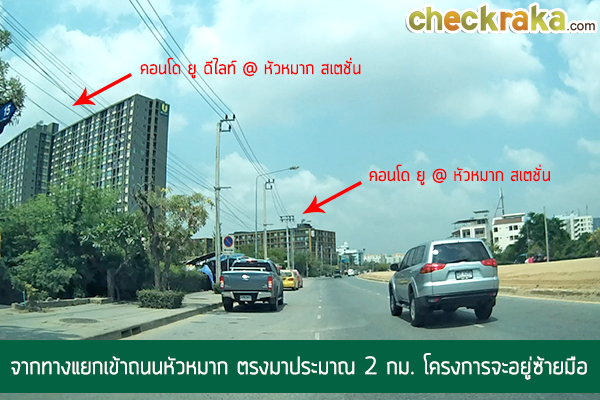 เดินเท้ามาเรื่อยๆ ประมาณ 80 ม. จะเจอคอนโด ยู @ หัวหมาก สเตชั่น