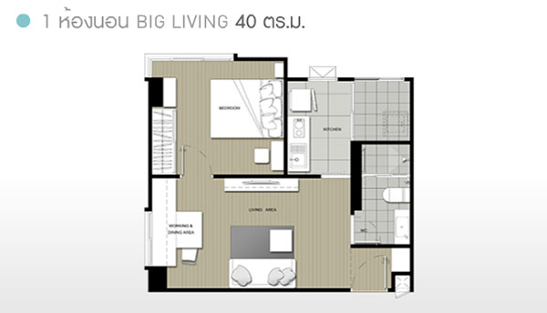 4. ห้องแบบ 1 Bedroom Big Living พื้นที่ใช้สอย 40 ตร.ม.