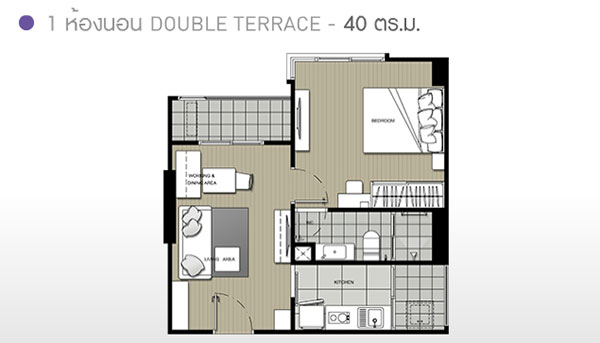 5. ห้องแบบ 1 Bedroom Double Terrace พื้นที่ใช้สอย 40 ตร.ม.
