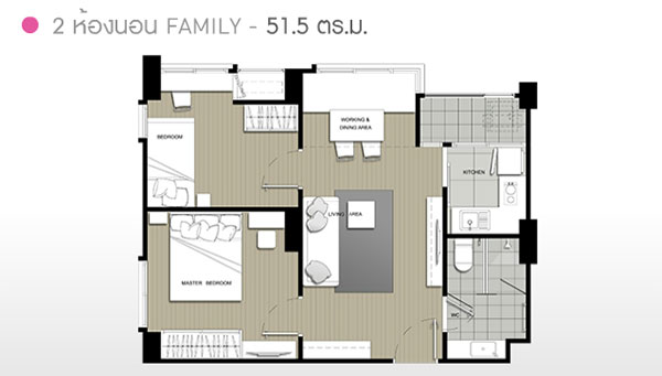 6. ห้องแบบ 2 Bedroom Family พื้นที่ใช้สอย 51.5 ตร.ม.