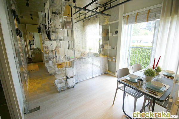รูปแบบห้องและวัสดุ - สำหรับ Layout ห้องในแต่ละยูนิตไม่ได้มีความแตกต่างกันมากนัก ยกเว้นห้องที่อยู่ชั้นเดียวกับ Facility ก็คือ ชั้น 6 จะพิเศษหน่อยเพราะเป็นแบบ Extra Terrace ซึ่งโครงการนี้จะขายแบบ Fully Furnished ให้ทุกอย่างที่ห้องตัวอย่างมีสุดยอดมั้ยคะ โดยเฟอร์นิเจอร์ที่ได้จากโครงการ ได้แก่ โซฟา, ผ้าม่าน, โต๊ะกลาง, เคาน์เตอร์ครัว, ซิงค์ล้างจาน, ไมโครเวฟ, ตู้เย็น, โต๊ะรับประทานอาหาร, ทีวี, เตียงนอน, โต๊ะข้างเตียง, Hob, Hood, Shower Box และเฟอร์นิเจอร์บิวท์อินทั้งหมดค่ะ เรียกว่าได้ประโยชน์และคุ้มค่าแบบไม่รู้จะอธิบายยังไงเลย
