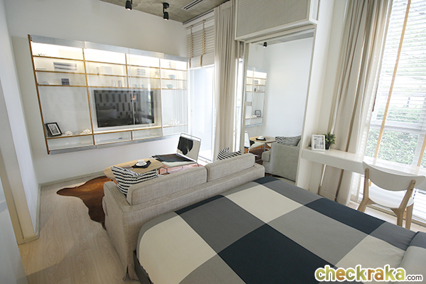 ห้องนี้จะเป็นห้องที่ทางโครงการตกแต่งให้เข้ากับ Concept เมื่อตอนเปิดตัวโครงการค่ะ เฟอร์นิเจอร์และการตกแต่งจะไม่ได้ตามแบบนี้นะคะ จะได้คล้ายๆ กับแบบ 1 ห้องนอนที่รีวิวไปแล้ว แต่เดี๋ยวเราจะพาไปชมพื้นที่ใช้สอยในห้องกันค่ะ