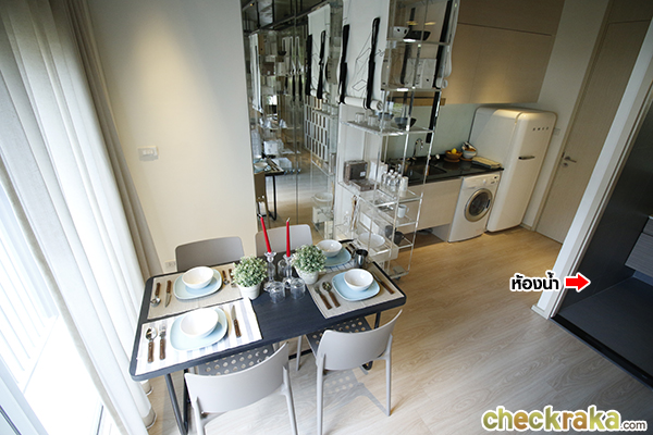 ระยะความสูงจากพื้นถึงเพดาน 2.60 ม. เมื่อเปิดประตูเข้ามาจะเจอกับโซนห้องครัวก่อน