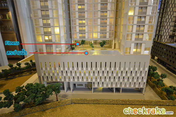 ถัดขึ้นไปเป็นชั้น 6 ที่รวมเอา Facility ได้แก่ สระว่ายน้ำ ฟิตเนส และสวนหย่อมรวมไว้ในชั้นนี้