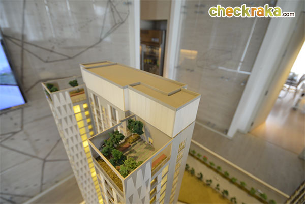 ภาพโมเดลโครงการแสดงที่จอดอดรถมีทั้งหมด 40% (รวมจอดซ้อนคัน) มีตั้งแต่ชั้น G และชั้น 2 - 5