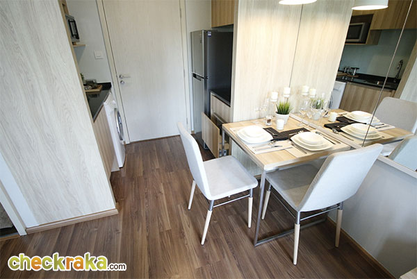 ติดกันกับครัวเป็นพื้นที่สำหรับวางโต๊ะรับประทานอาหารค่ะ ทางโครงการจัดวางเป็นขนาด 4 ที่ไว้เป็นตัวอย่าง