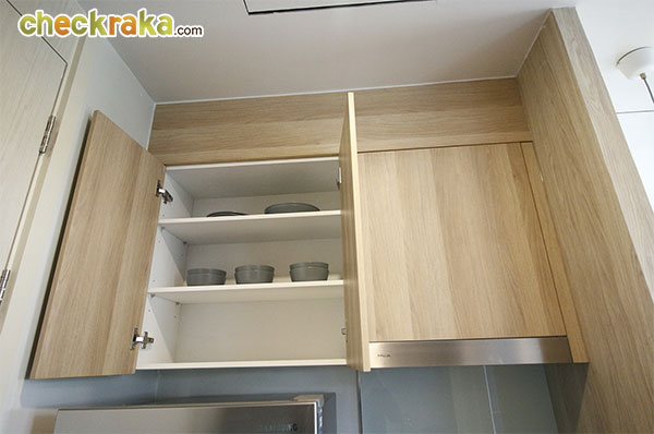 ด้านบนเคาน์เตอร์จะเป็นชั้นเก็บของค่ะ เอาไว้เก็บอาหารแห้งหรือเครื่องปรุง