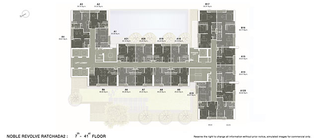 ชั้น 7 - 41 เป็นห้องพักอาศัยทั้งหมด เฉลี่ยชั้นละ 21 ยูนิต