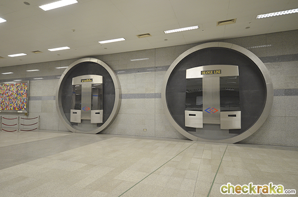 ภาพจากสถานีรถไฟฟ้าใต้ดินศูนย์วัฒนธรรมฯ จำลองบริเวณจุดเชื่อมต่อกับสายสีส้มในอนาคต