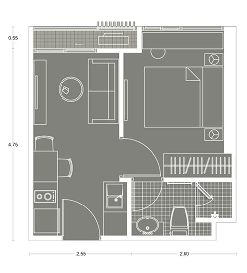 Plan แบบ 1 ห้องนอน ขนาด 25.24 ตร.ม.