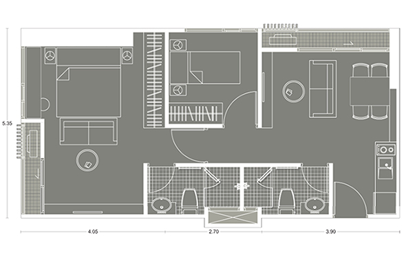 Plan ห้องแบบ 2 ห้องนอน ขนาด 52.77 ตร.ม.