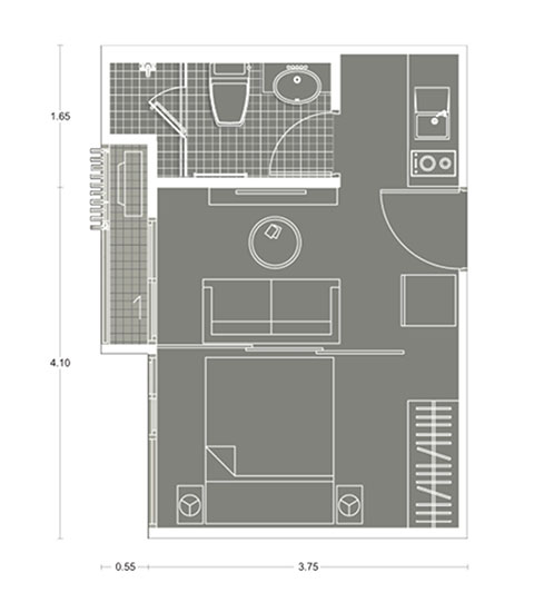 ภายในห้องสามารถวางโซฟาขนาดใหญ่ได้ ถ้าเป็นห้องนอนก็สามารถวางเตียงขนาด 3.5 ฟุต