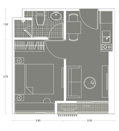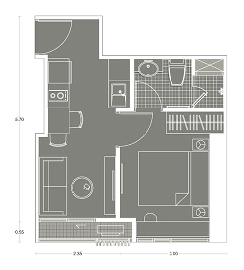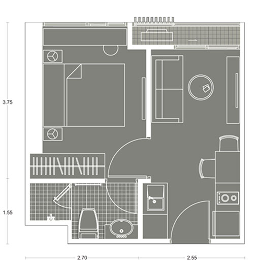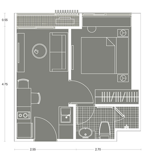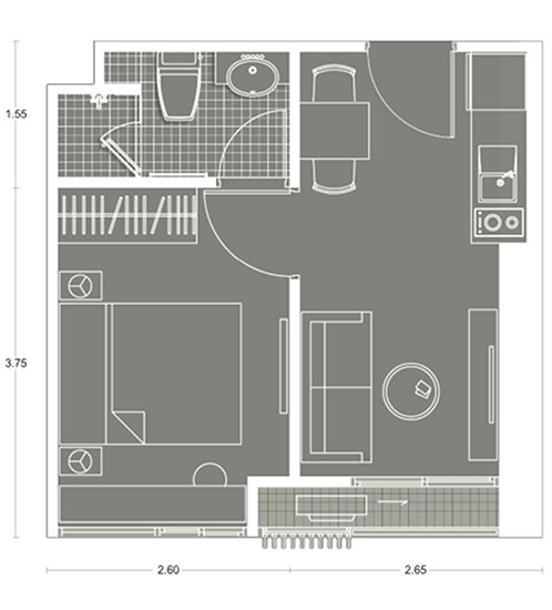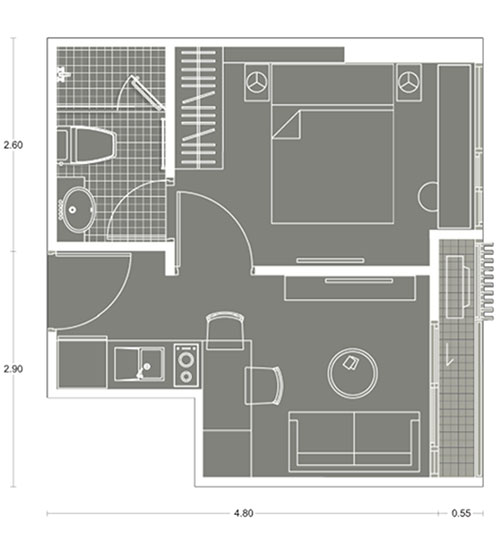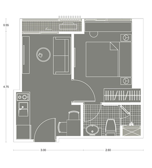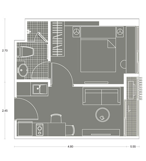 Plan แบบ 1 ห้องนอน ขนาด 25.24 ตร.ม.