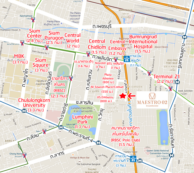 CentralWorld ห่างจากโครงการประมาณ 2 กม.
