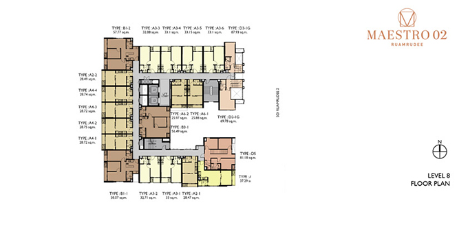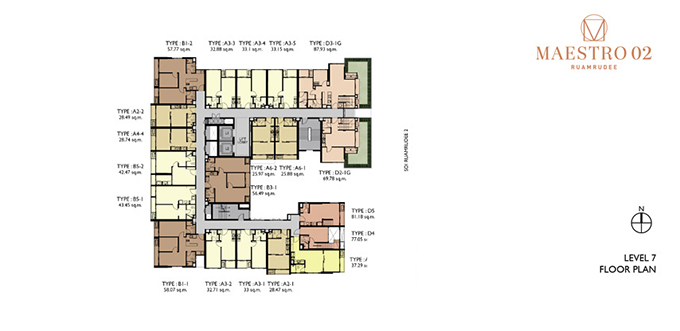 A2-3G : พื้นที่ใช้สอย 28.02 ตร.ม. (คลิกเพื่อชมตัวอย่างแปลน)