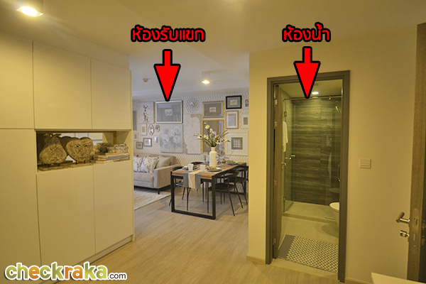 หันกลับมาด้านขวามือ จะเป็นห้องน้ำและห้องรับแขก