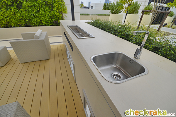 เคาน์เตอร์ครัวทำจากหินสังเคราะห์ ในส่วนห้องครัวนั้นได้ตามตัวอย่างเลยค่ะ ยกเว้นเครื่องใช้ไฟฟ้า