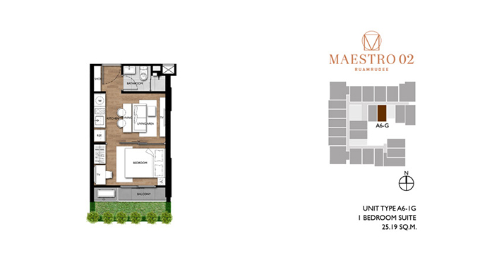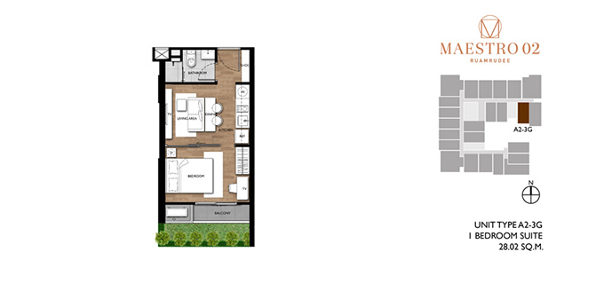 A2-3G : พื้นที่ใช้สอย 28.02 ตร.ม. (คลิกเพื่อชมตัวอย่างแปลน)