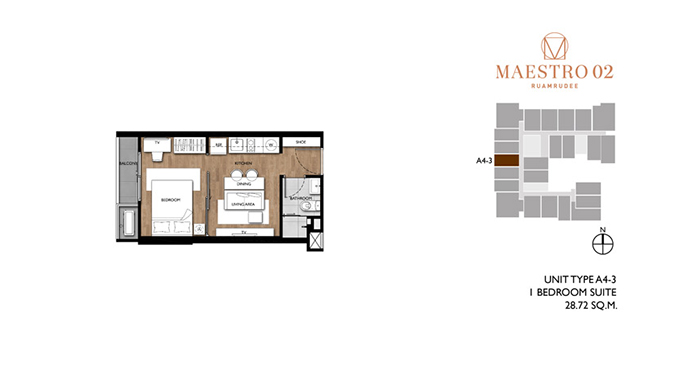 A4-3 : พื้นที่ใช้สอย 28.72 ตร.ม. (คลิกเพื่อชมตัวอย่างแปลน)