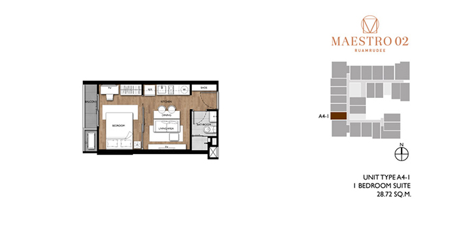 A4-1 : พื้นที่ใช้สอย 28.72 ตร.ม. (คลิกเพื่อชมตัวอย่างแปลน)