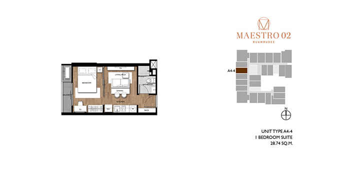 A4-4 : พื้นที่ใช้สอย 28.74 ตร.ม. (คลิกเพื่อชมตัวอย่างแปลน)