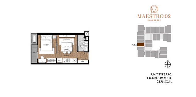 A4-2 : พื้นที่ใช้สอย 28.75 ตร.ม. (คลิกเพื่อชมตัวอย่างแปลน)
