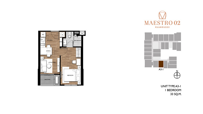 A3-1 : พื้นที่ใช้สอย 33.0 ตร.ม. (คลิกเพื่อชมตัวอย่างแปลน)