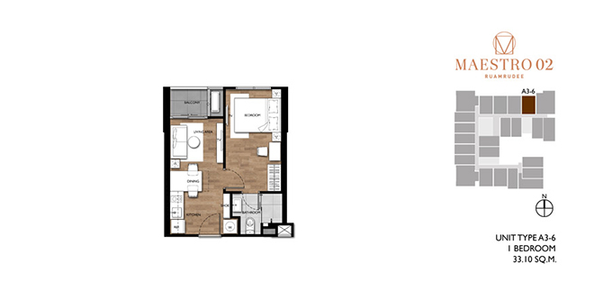 A3-6 : พื้นที่ใช้สอย 33.10 ตร.ม. (คลิกเพื่อชมตัวอย่างแปลน)