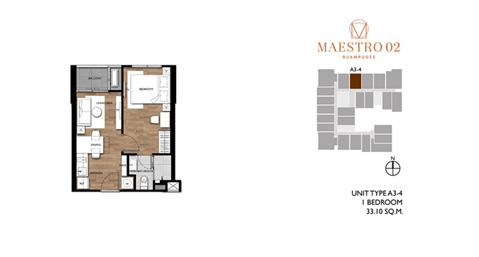 A3-4 : พื้นที่ใช้สอย 33.10 ตร.ม. (คลิกเพื่อชมตัวอย่างแปลน)