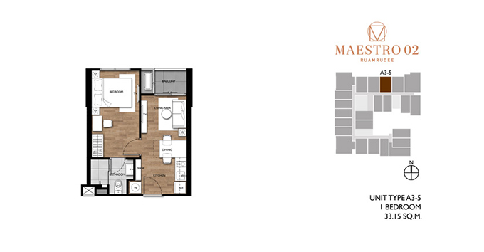 A3-5 : พื้นที่ใช้สอย 33.15 ตร.ม. (คลิกเพื่อชมตัวอย่างแปลน)