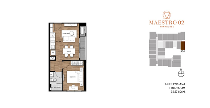 A5-1 : พื้นที่ใช้สอย 35.57 ตร.ม. (คลิกเพื่อชมตัวอย่างแปลน)