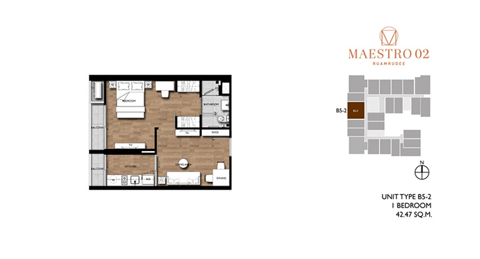 B5-2 : พื้นที่ใช้สอย 42.47 ตร.ม. (คลิกเพื่อชมตัวอย่างแปลน)