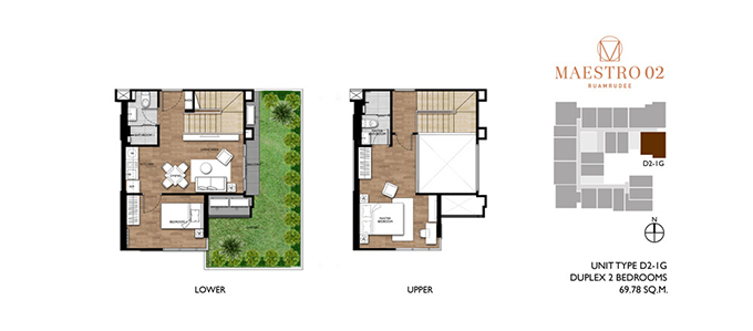 แบบ 2 ห้องนอน ดูเพล็กซ์ (พื้นที่ใช้สอย 69.5 ตร.ม.)