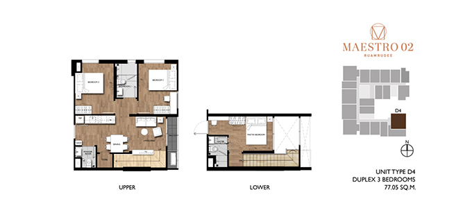 D4 : พื้นที่ใช้สอย 77.05 ตร.ม. (คลิกเพื่อชมตัวอย่างแปลน)